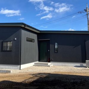 お客様のご要望 シンプルかつお洒落なカリフォルニアスタイルの家 リビングに吹き抜けがほしい ストリップ階段にしたい ブラックのガルバリウム鋼板でシンプルかつシックな外観に。 内装は白を基調として明るい空間に仕上げました。