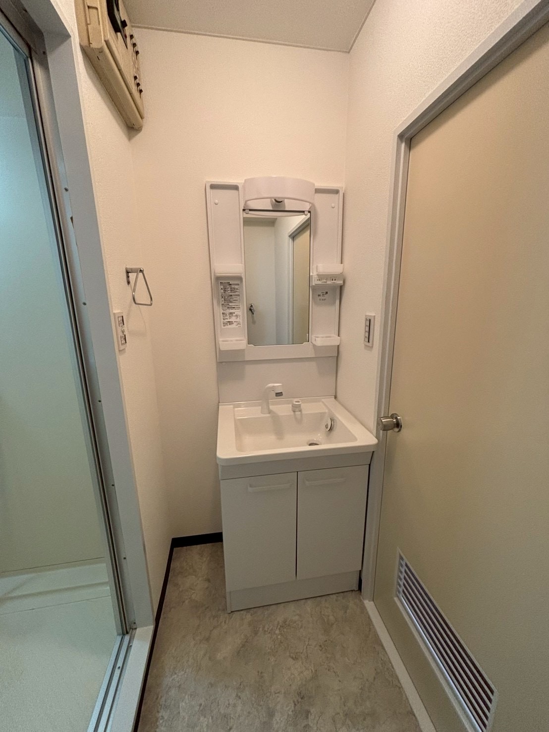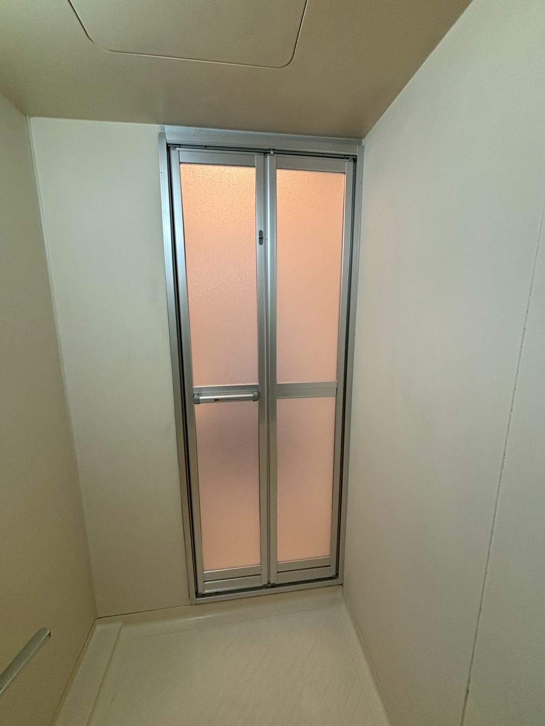 ピタッと閉まらなくなってしまっていた浴室ドアは、カバー工法により交換。